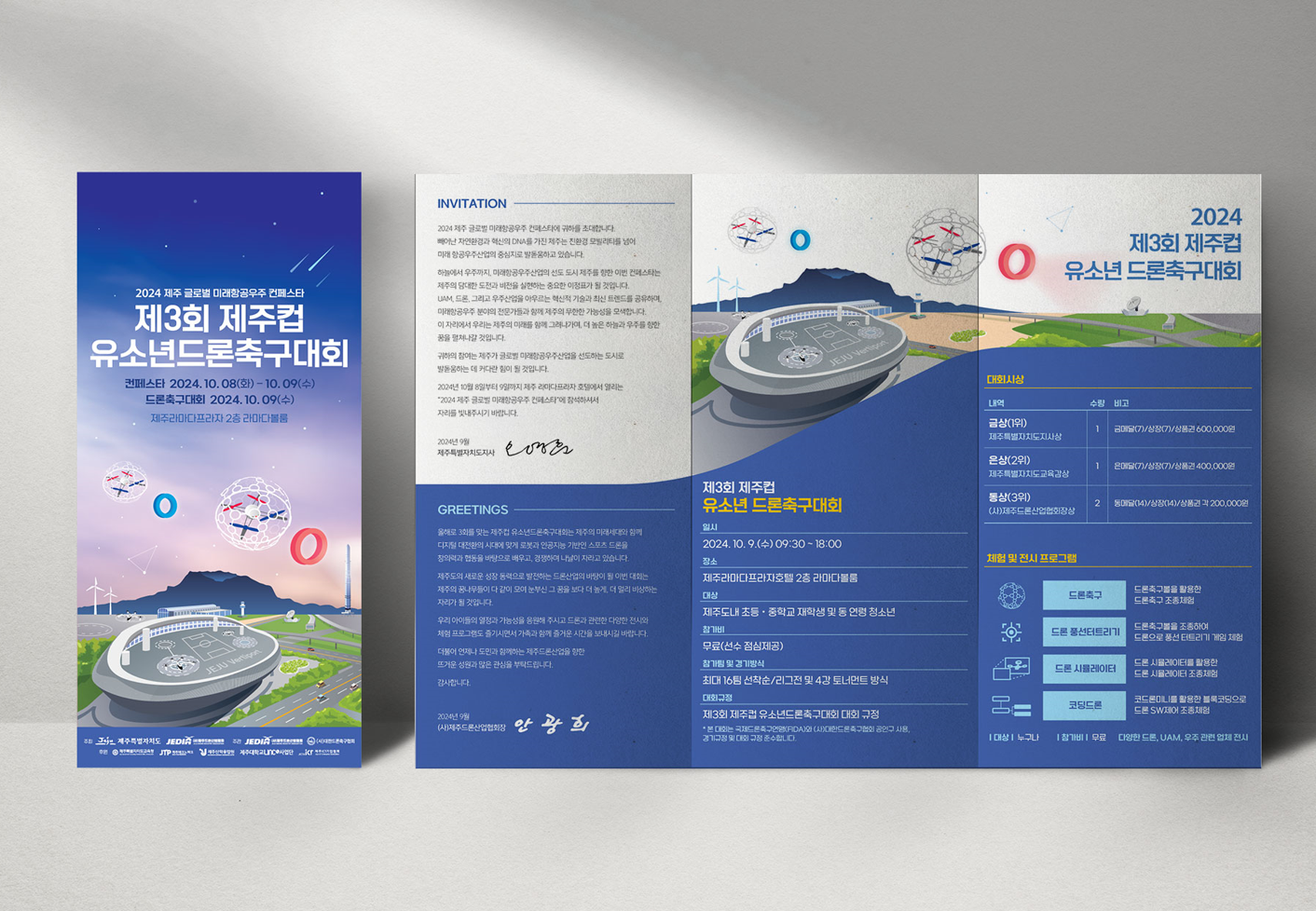 제주 미래항공우주 컨페스타는 전시, 컨퍼런스, 라이트쇼, 드론 대회 등 차세대 산업 행사입니다. 미래 제주 버티허브와 드론, UAM, 우주선 발사 등을 내포하는 컨셉을 바탕으로 이미지메이킹한 그래픽 작업입니다.