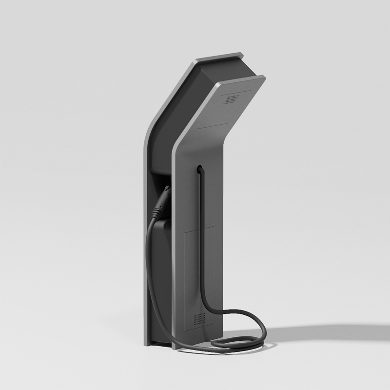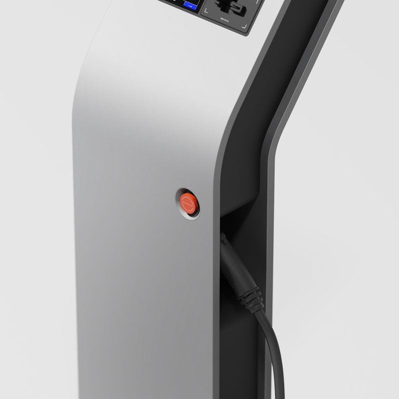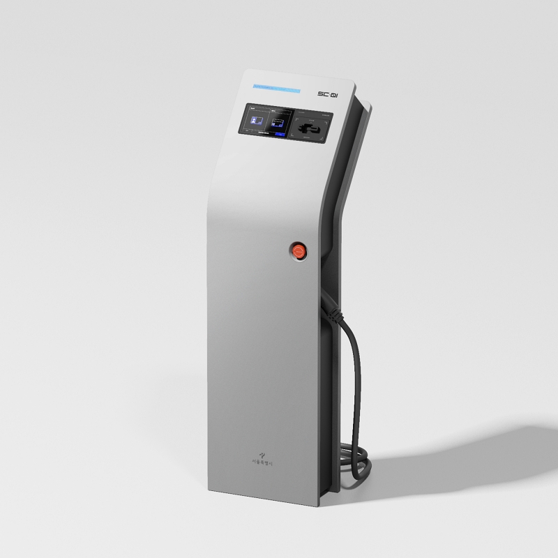 SK 일렉링크 사의 전기차 충전기입니다. 마치 음식 '타코'처럼 전면과 후면에 밝은 톤의 판넬을 배치하고 사이 공간의 색상을 어둡게 처리하여 슬림해 보일 수 있도록 했으며, 미래적인 디테일을 추가하였습니다.