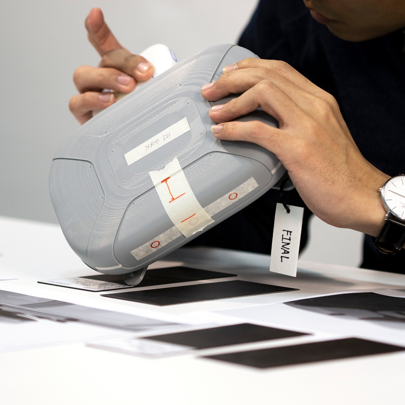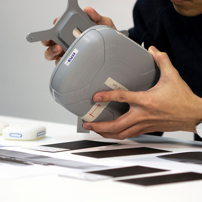 한국전력의 차량 부착형 배전설비 점검 디바이스입니다. 다수의 카메라로 인해 보행자나 타 차량에 거부감을 주지 않도록 친근한 조형을 사용했으며, 유지보수가 용이하도록 부위별 파트를 나눴습니다.