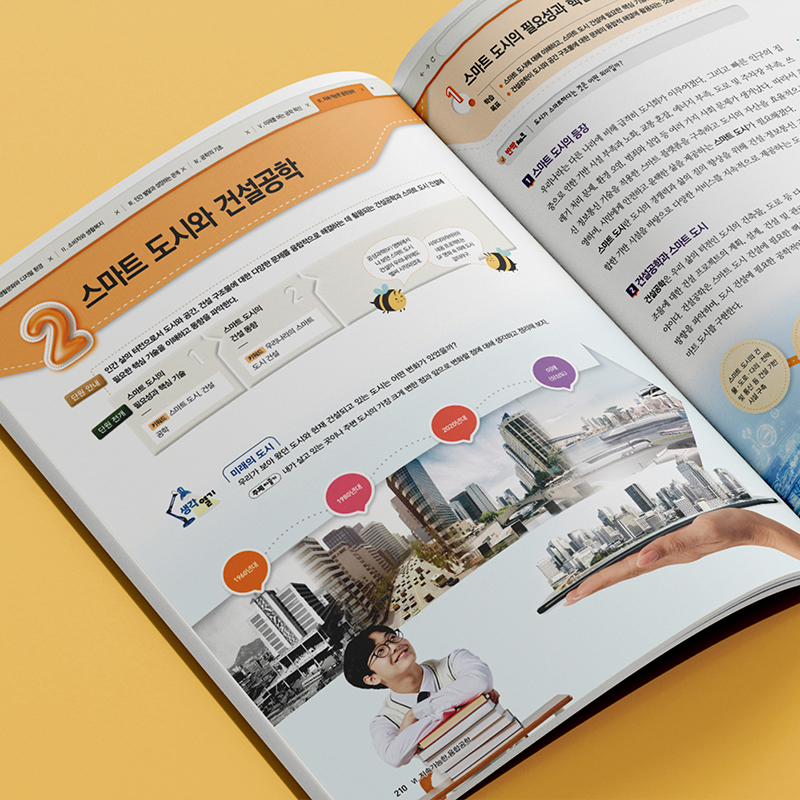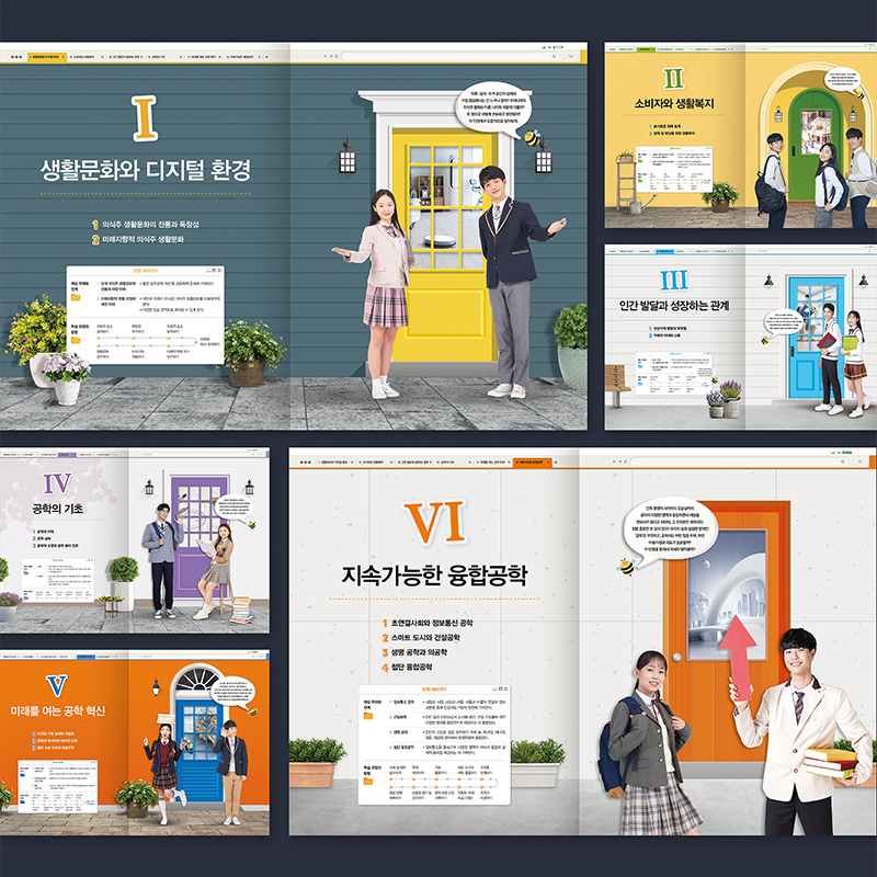 2022 교육개정 고등학교 「기술·가정」 교과서 본문을 디자인했습니다. 단원별 시각 및 위계 구조를 파악하여 학생들의 창의활동이 풍부해질 수 있도록 하는데 중점을 두었습니다.