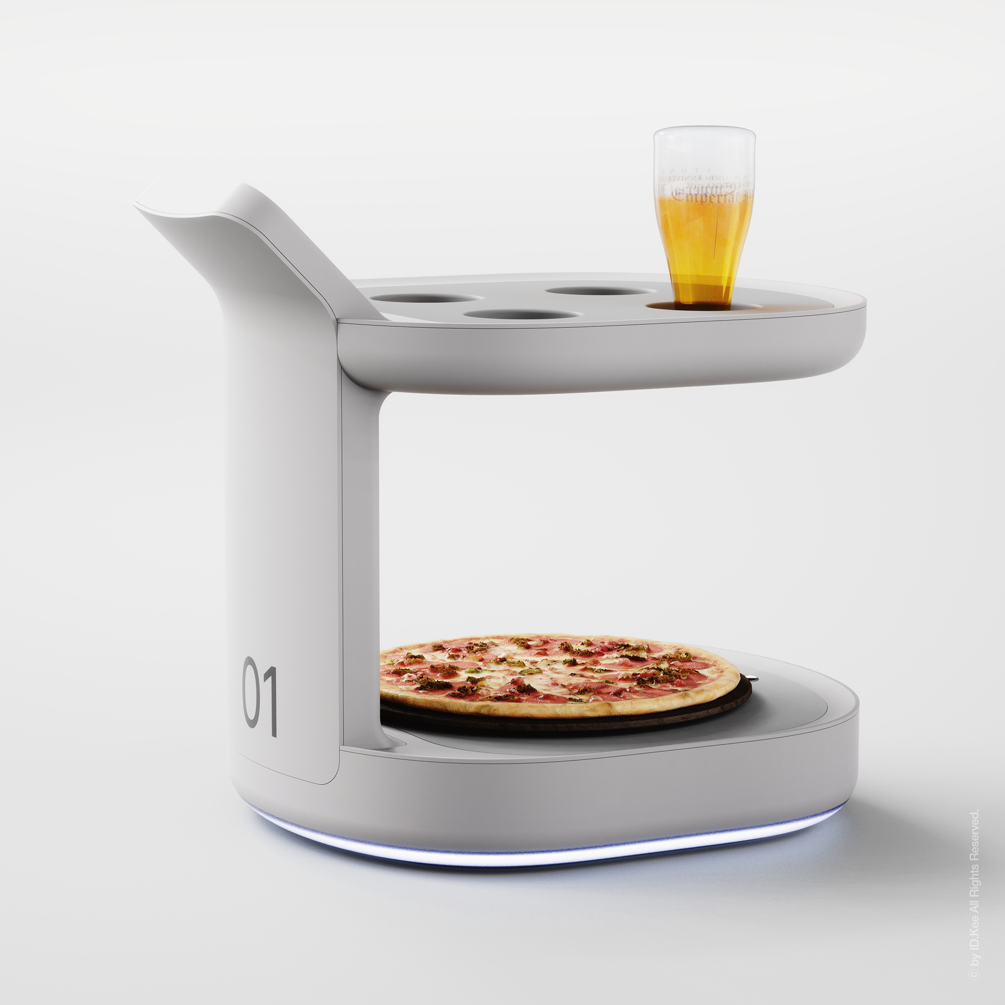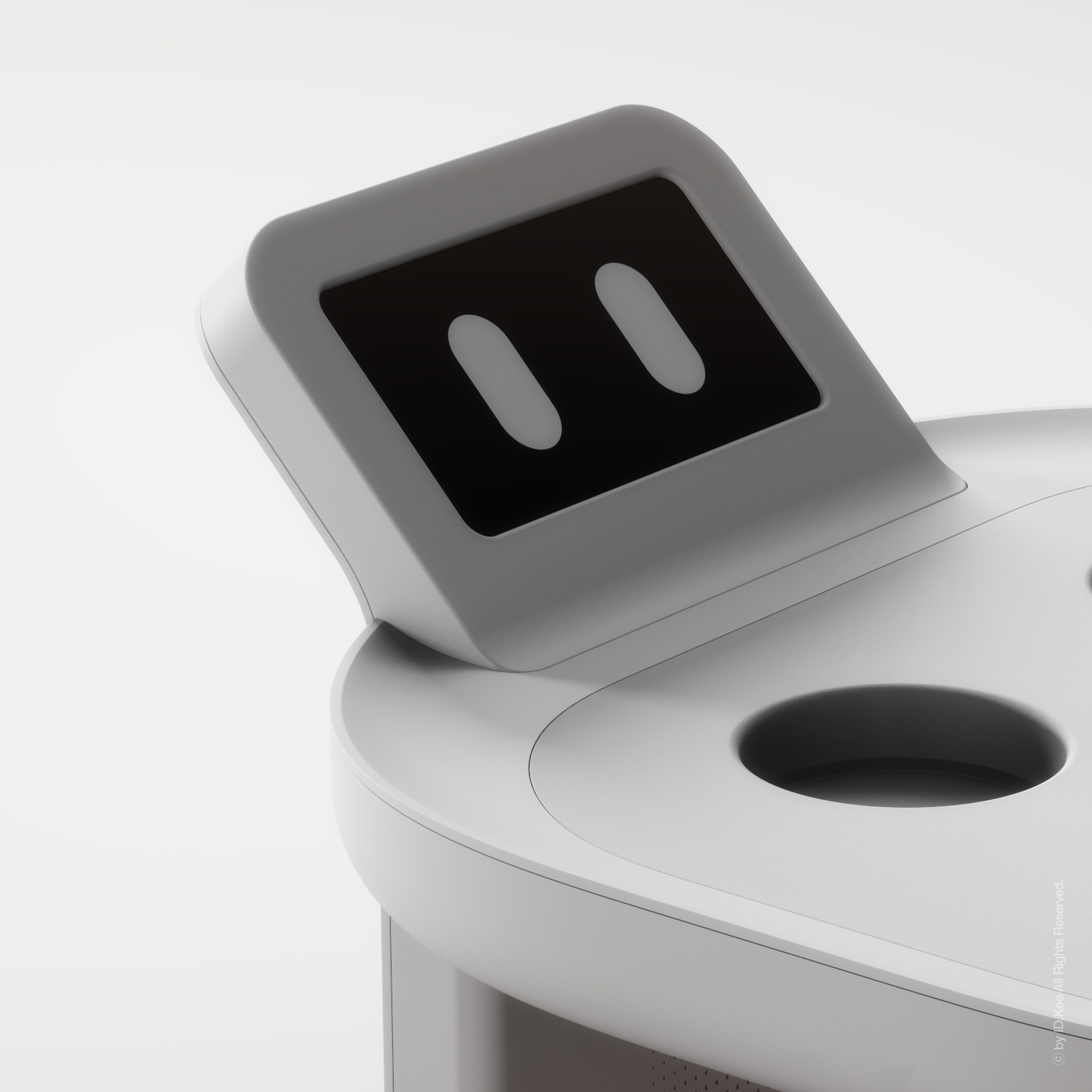 캐릭터감 있는 형태는 사용자에게 안전하고 친근한 인상을 주며, 화이트 컬러는 청결하고 신뢰감 있는 이미지를 전달합니다. 이를 통해 서빙 로봇이 일상 공간에 자연스럽게 스며들 수 있도록 디자인했습니다.