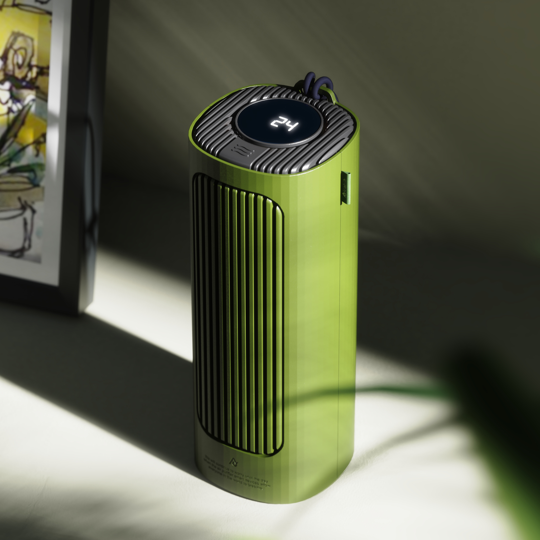 에어러블의 휴대용 공기청정기는 형태적 그라데이션을 제품 표면에 패턴화하여 새로운 시각적 재미를 제공합니다.