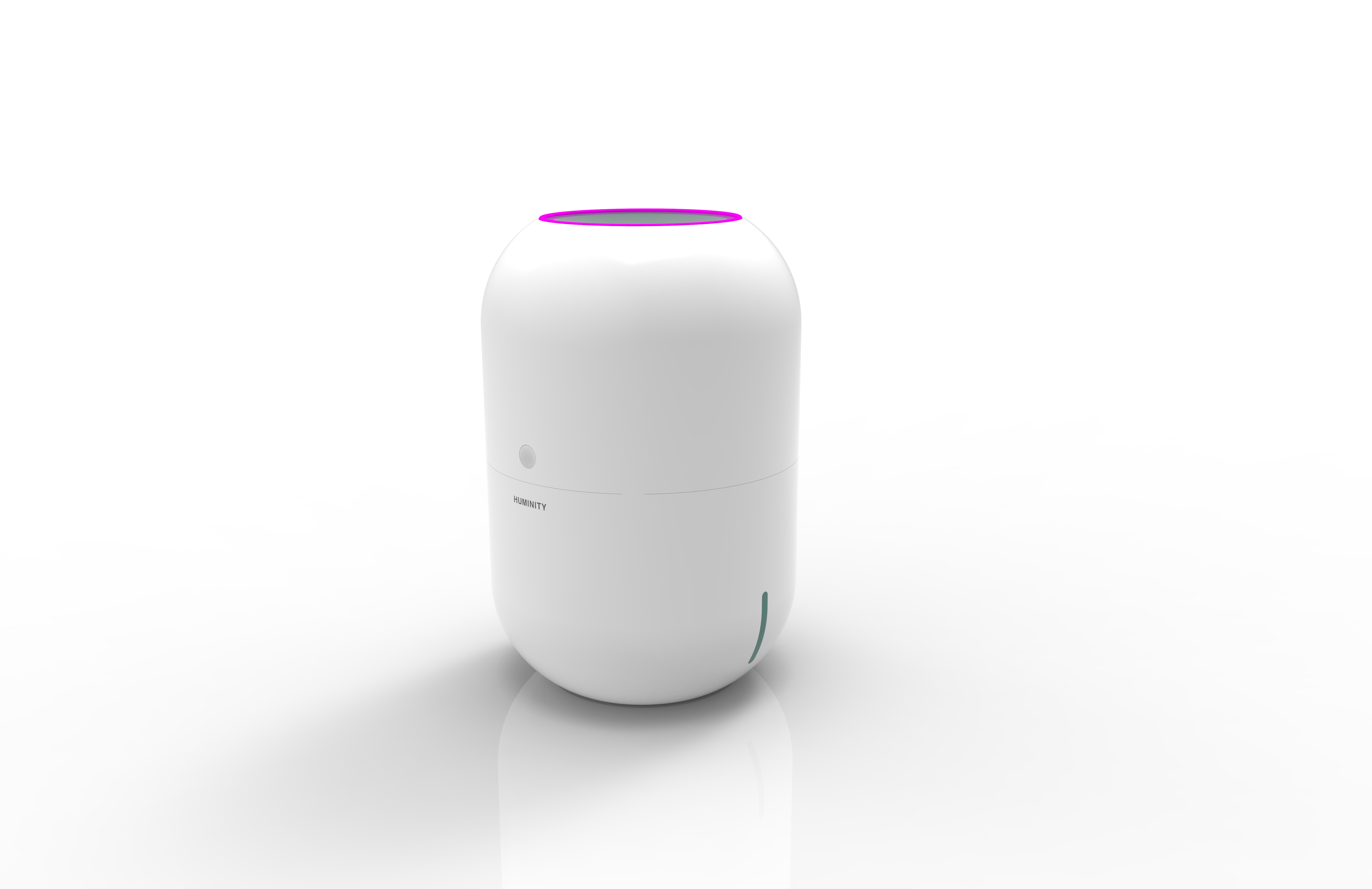 정전분무 기술적용한 가습기로 가습시 살균작용을 통해 인체에 무해한 가습하며 기기내 살균력으로 별도의 세척이 필요 없는 혁신 기술로 미니멀한 제품 형태로 실내 오브제 디자인을 적용 고급스런 이미지를 가미