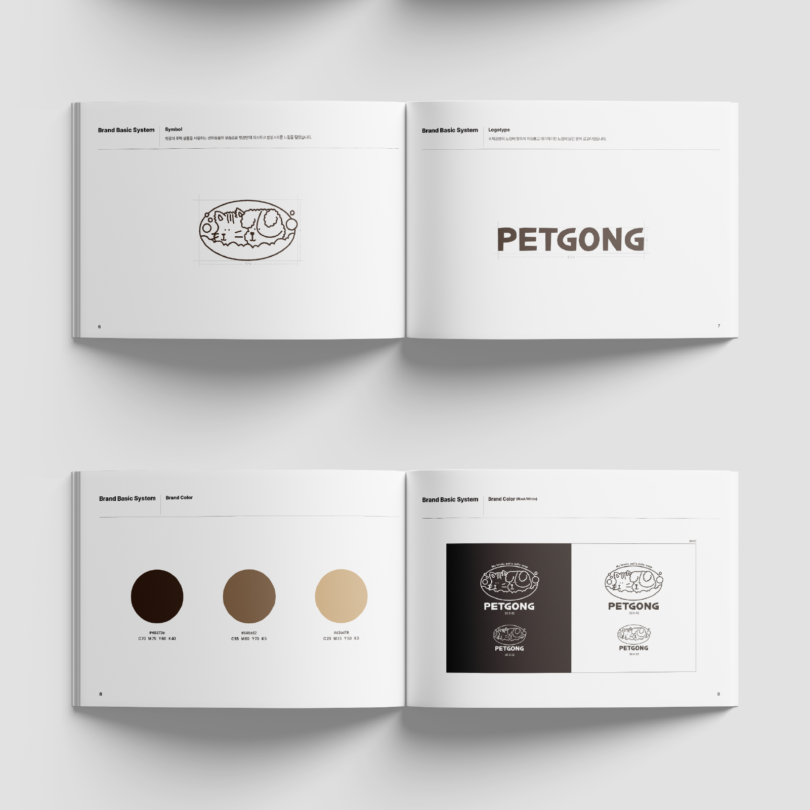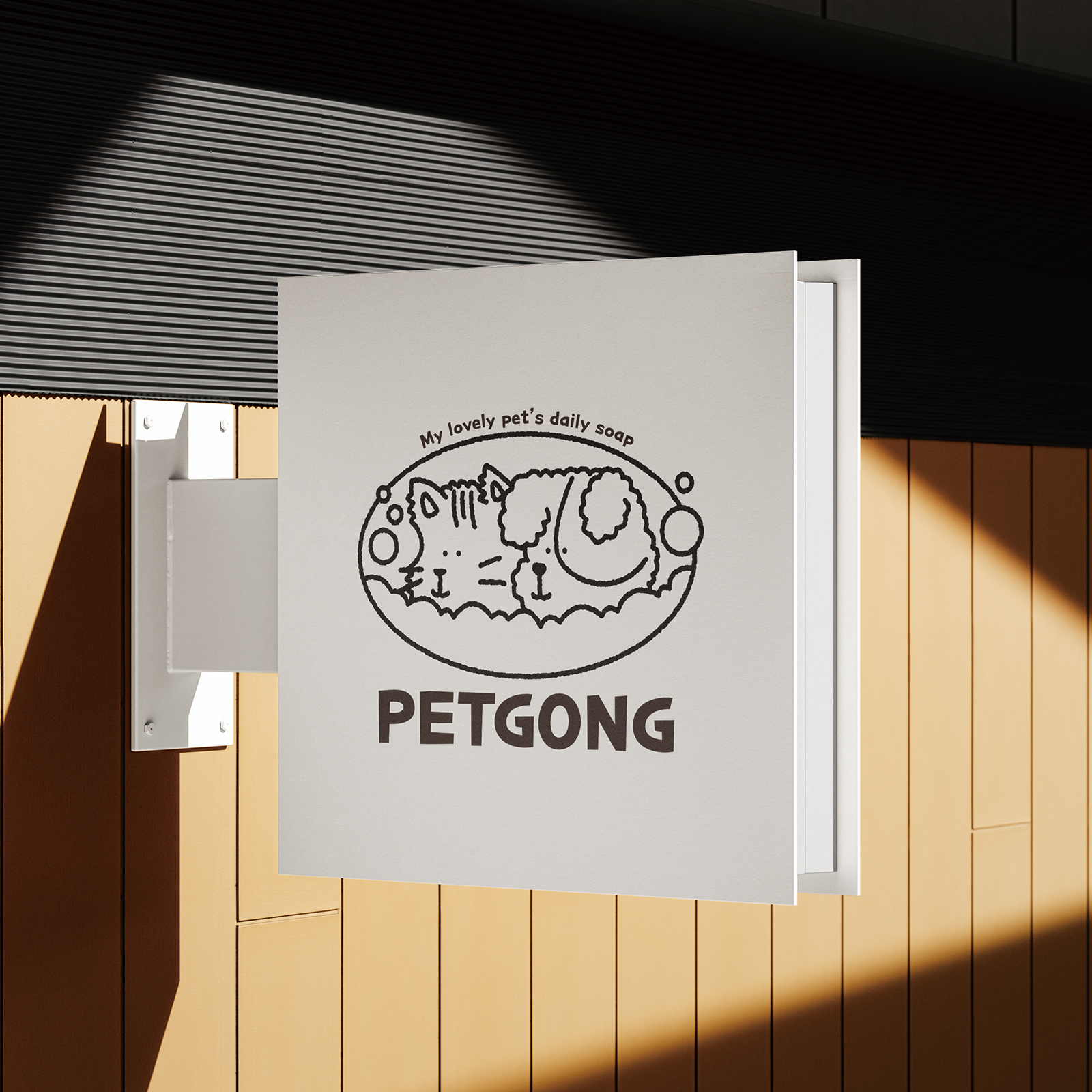 펫공은 반려동물과 보호자의 특별한 공존을 담아낸 브랜드로, 따뜻한 일상과 교감을 모티브로 디자인되었으며, 귀여운 캐릭터 일러스트로 제작했습니다.