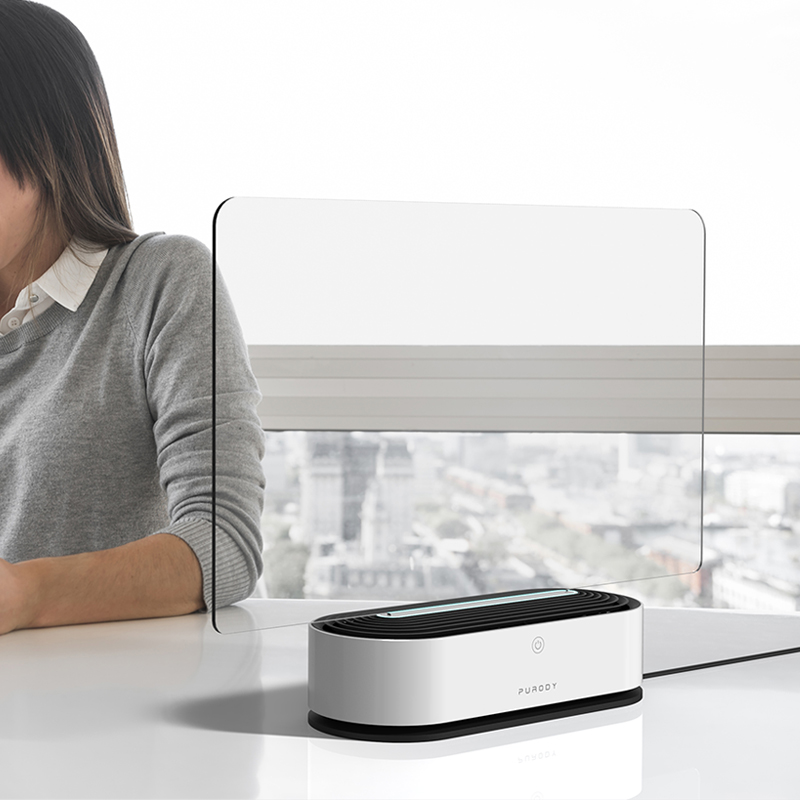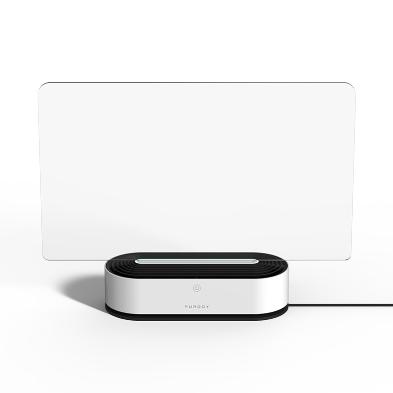 포스트 코로나 시대를 맞이하여 1:1 혹은 1:다수 대면 환경에서 공기 중 비말을 포집하고 바이러스를 제거하는 VNT 나노촉매필터가 장착된 공기살균정화기