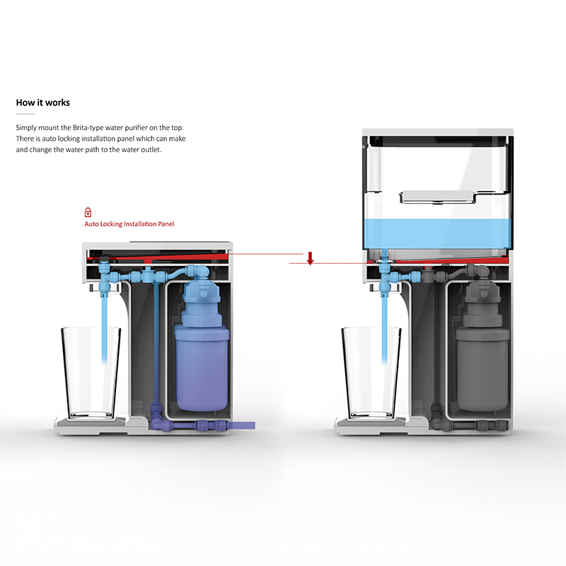 사용자의 환경(실내/외)에 따라 직수형, 간이형, 디스펜서형 3가지 정수 방식을 선택하여 사용할 수 있는 모듈형 정수기