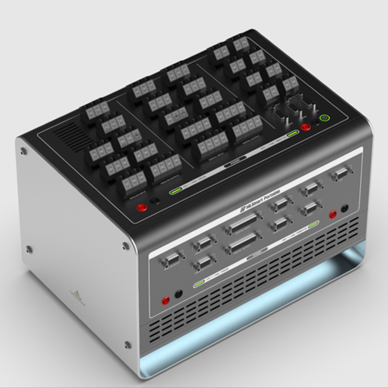 시험장비인 HILSMART의 핵심 기능만을 집약시킨 PORTABLE TYPE의 외관 디자인으로 알루미늄과 스틸의 특성을 입체적으로 구성하고 많은 기능과 버튼을 사용성과 심미성을 고려하여 정리하였습니다.