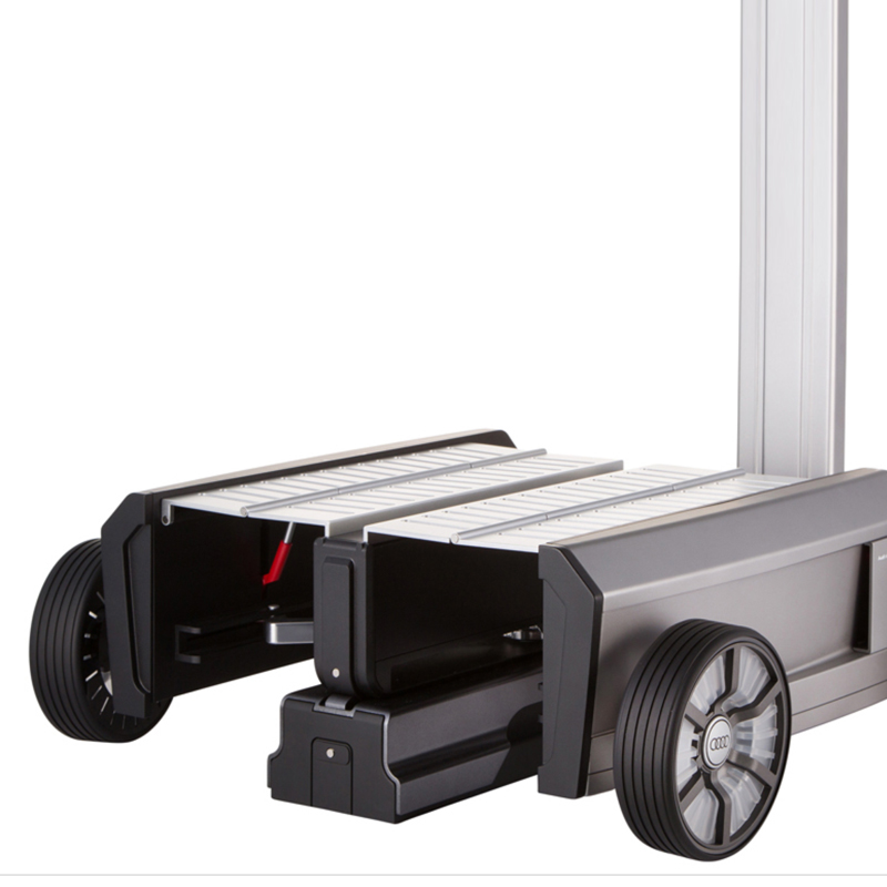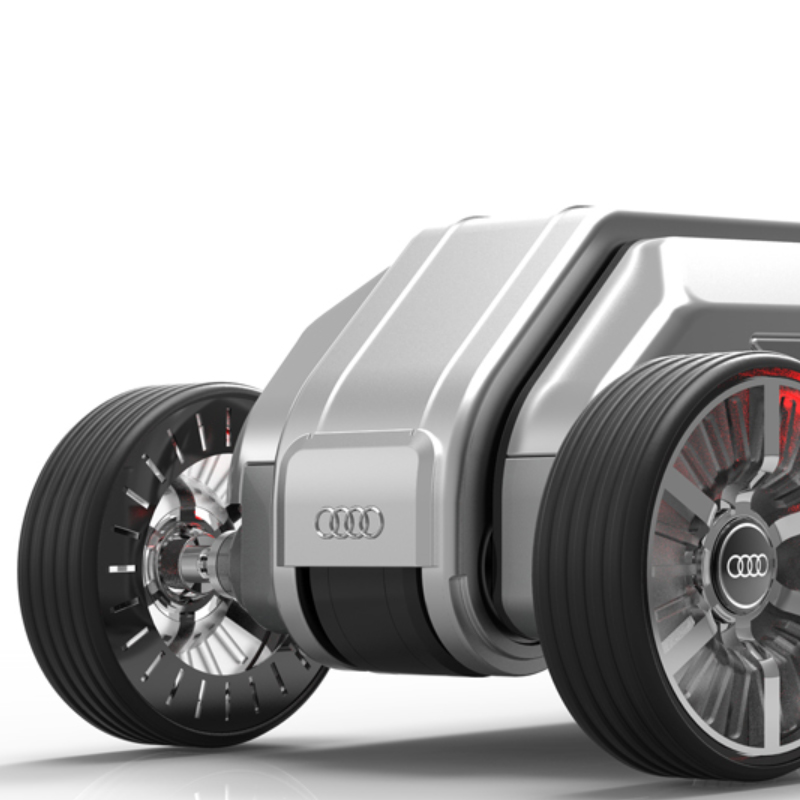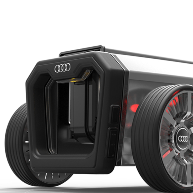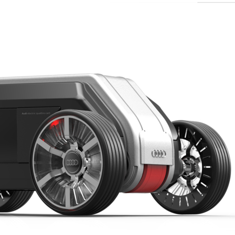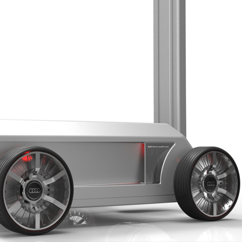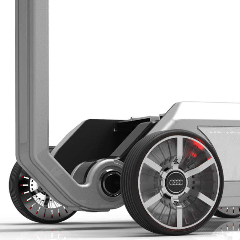 아우디 디자인 챌린지 우승 작품으로 아우디 차량의 트렁크에 보관하는 일렉트릭 카트 디자인으로 아우디의 디자인 언어를 담고있고 확장 구조를 창의적으로 표현하였으며 레버를 통해 조향과 동작을 인지합니다.