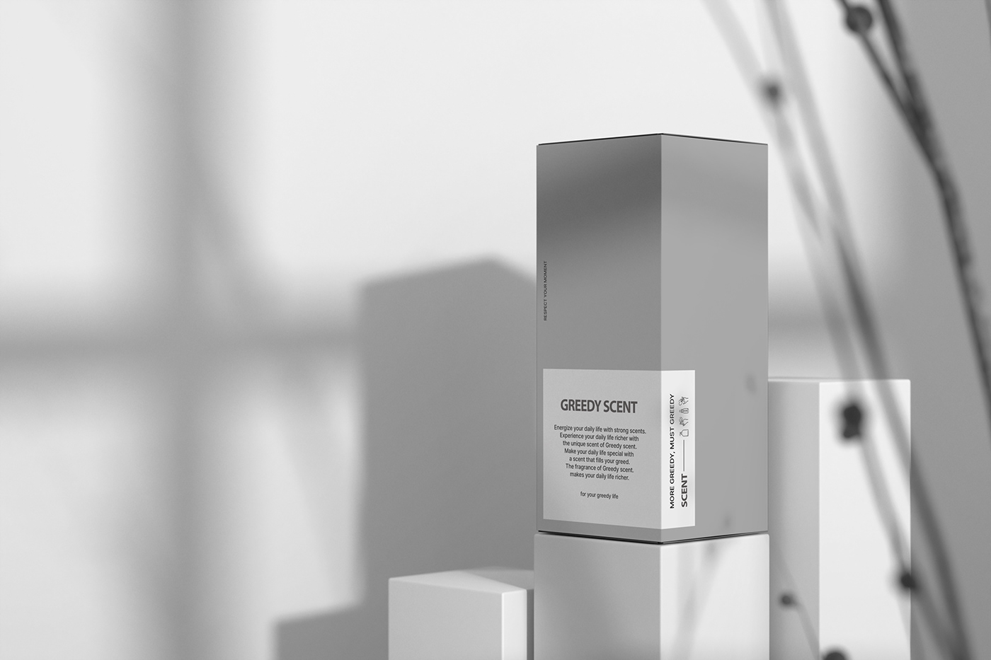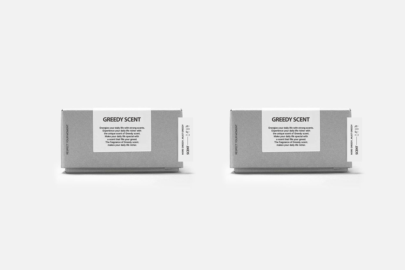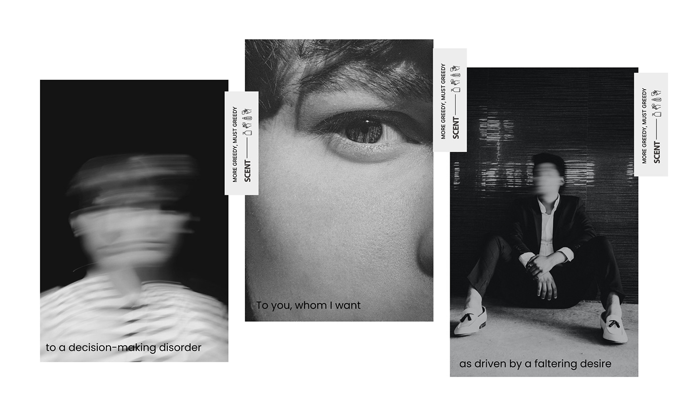 GREEDY SCENT는 미니멀한 패키지와 정제된 그래픽으로 브랜드의 감각적인 아이덴티티를 표현한 화장품이다. 화이트와 메탈 톤의 절제된 디자인으로 본질과 향에 집중하도록 설계되었다.