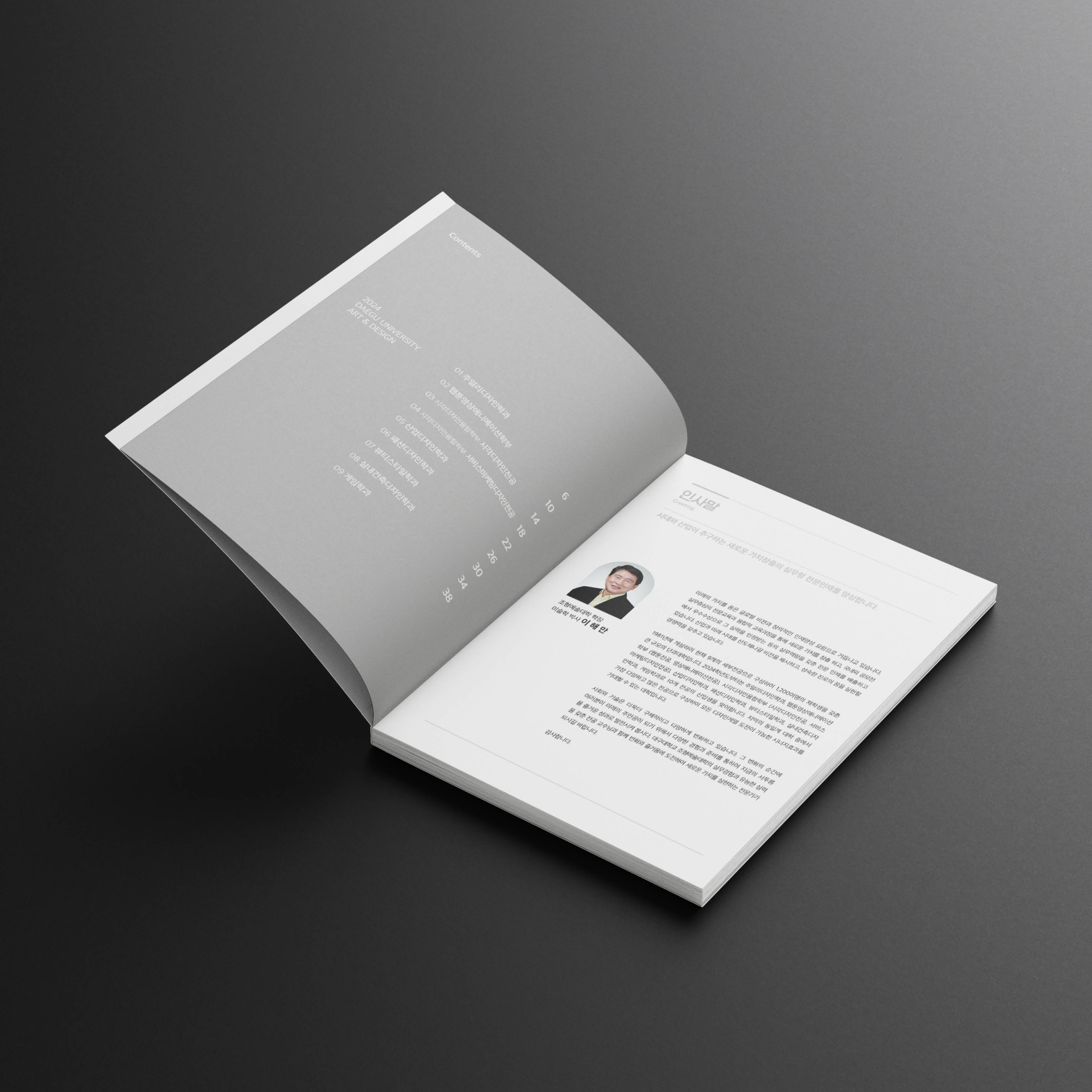 행사 및 프로젝트 내용을 체계적으로 전달하기 위한 편집디자인 작업입니다. 정보의 위계와 가독성을 고려한 레이아웃 구성으로 독자의 이해와 흐름을 효과적으로 돕고자 하였습니다.