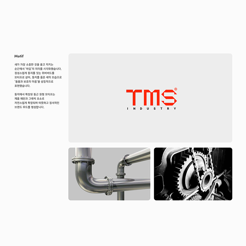 자동차 부품 산업의 정밀함과 기술력을 구조적 심볼로 시각화했습니다. 하이테크 무드의 컬러와 안정적인 서체를 결합해 기업의 신뢰감을 구축한 BI&브랜딩 프로젝트입니다.