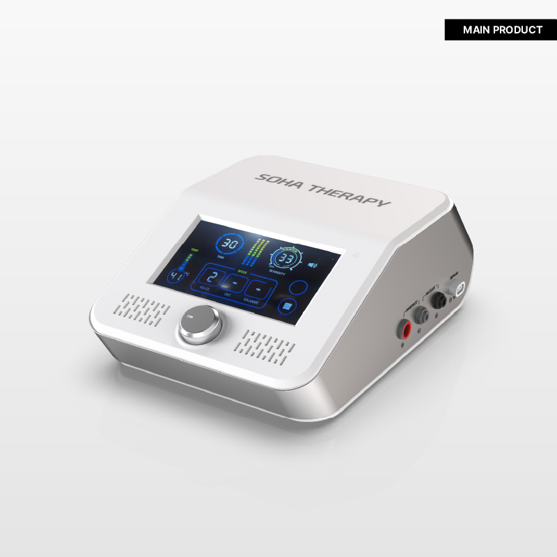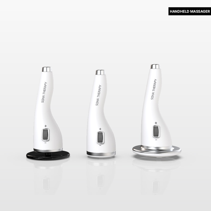 저, 고주파 마사지기로 한 개의 본체에 3개의 도자를 사용하는 제품입니다. 시술자의 피로도를 최소화하고 시술 대상자를 보면서 핸드로 사용자가 감각적으로 컨트롤 할 수 있도록 디자인했습니다.