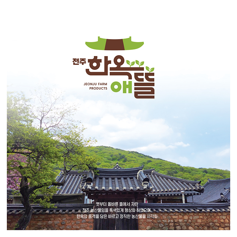 옛 부터 올바른 뜰에서 자란 전주 농산물임을 특색있게 형상화 하였으며, 한옥의 품격을 담은 바르고 정직한 농산물을 시각화