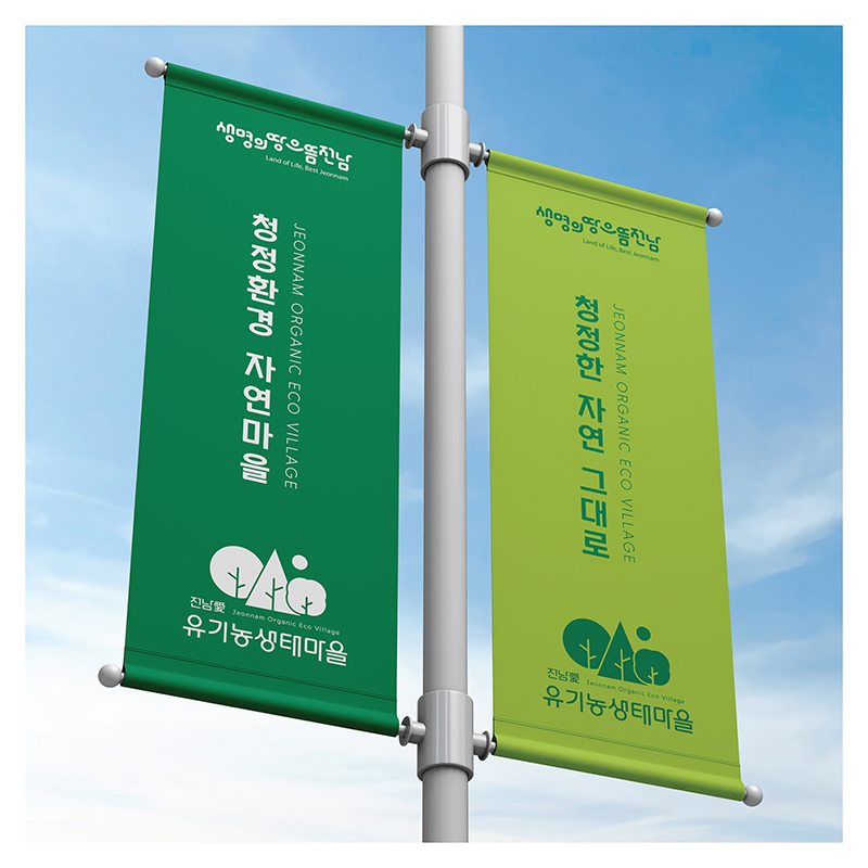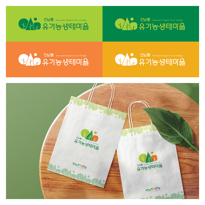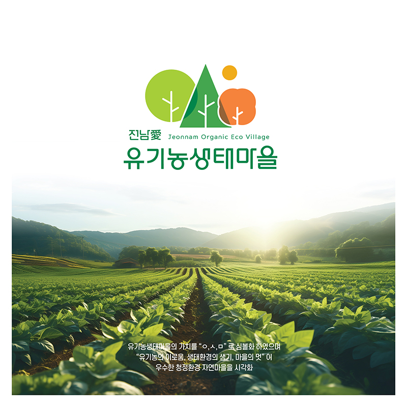 유기농생태마을의 가치를 "ㅇ,ㅅ,ㅁ" 로 심볼화, "유기농의 이로움, 생태환경의 생기, 마을의 멋"이 우수한 청정환경 자연마을을 시각화