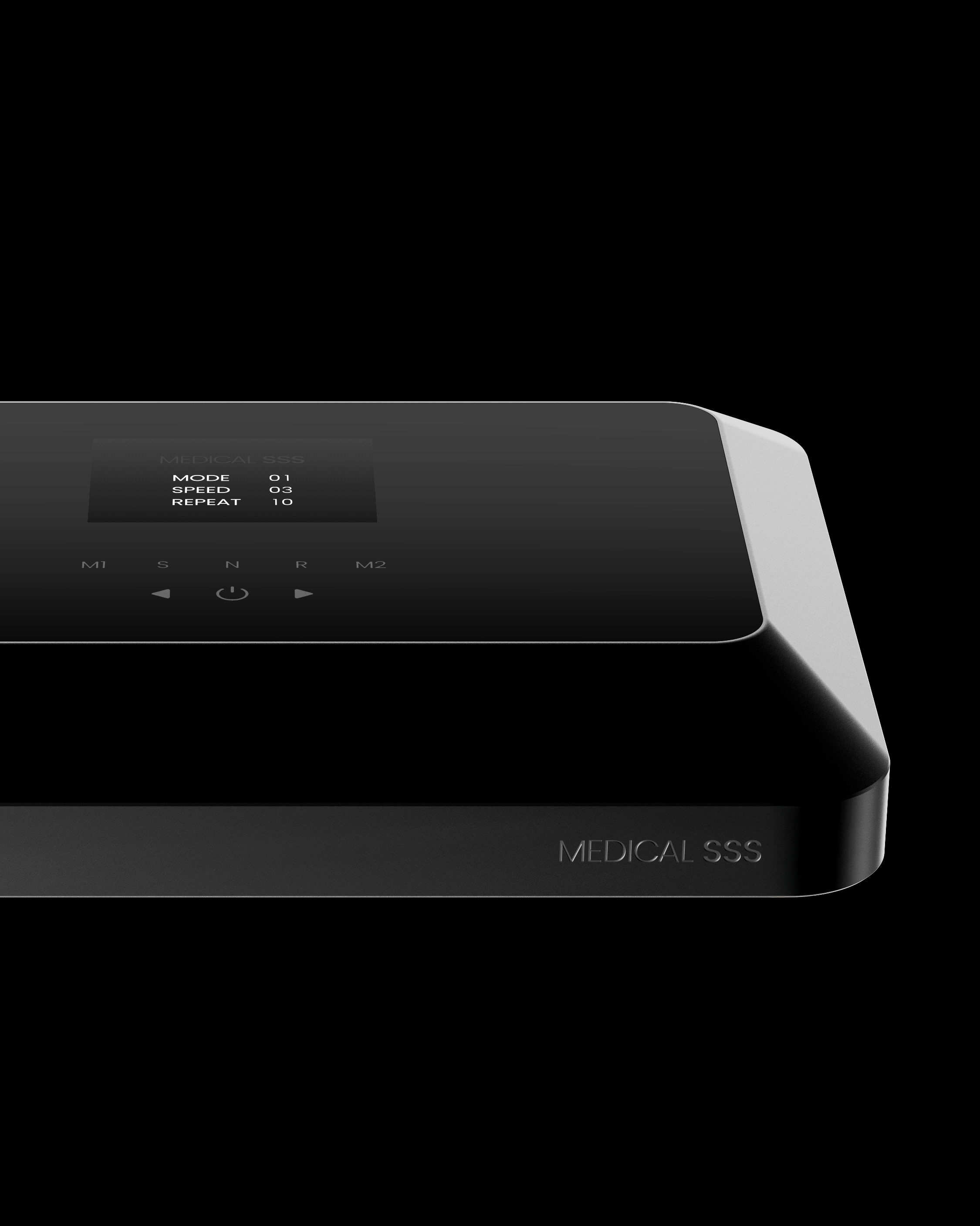 부드럽게 라운딩된 모서리와 깊이 있게 파인 전면 블랙 패널의 대비를 통해 세련된 입체감을 형성하며, 미니멀한 UI 구성으로 의료기기 특유의 정제된 안정감을 강조하였습니다.