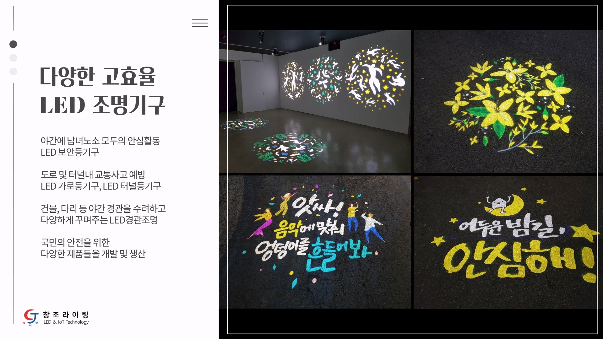 친환경 LED 전문기업 창조라이팅의 제품과 기능, 우수성을 제품 연출 촬영과 모션그래픽으로 기획, 제작하였습니다.