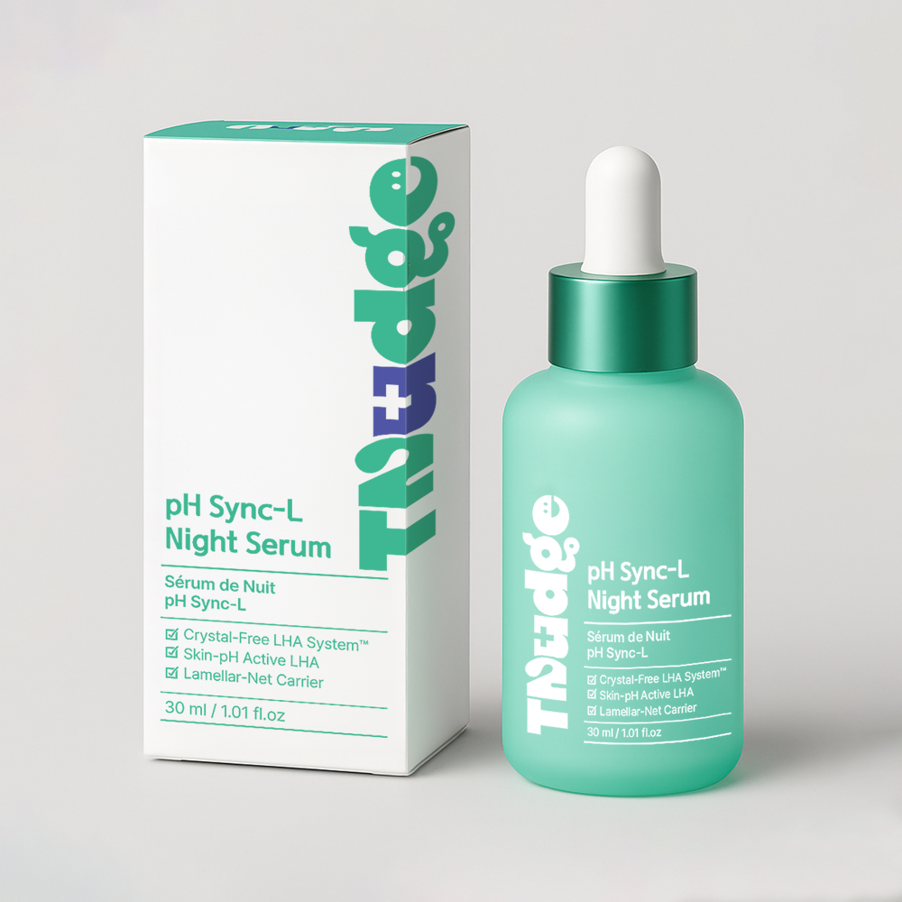 청량한 민트 그린 컬러와 세로형 로고를 강조한 세럼 패키지입니다. 화이트 단상자와 무광 유리 용기의 매치로 클린 뷰티의 신뢰감을 더하고, 미니멀한 레이아웃으로 트렌디한 브랜드 아이덴티티를 완성했습니다.