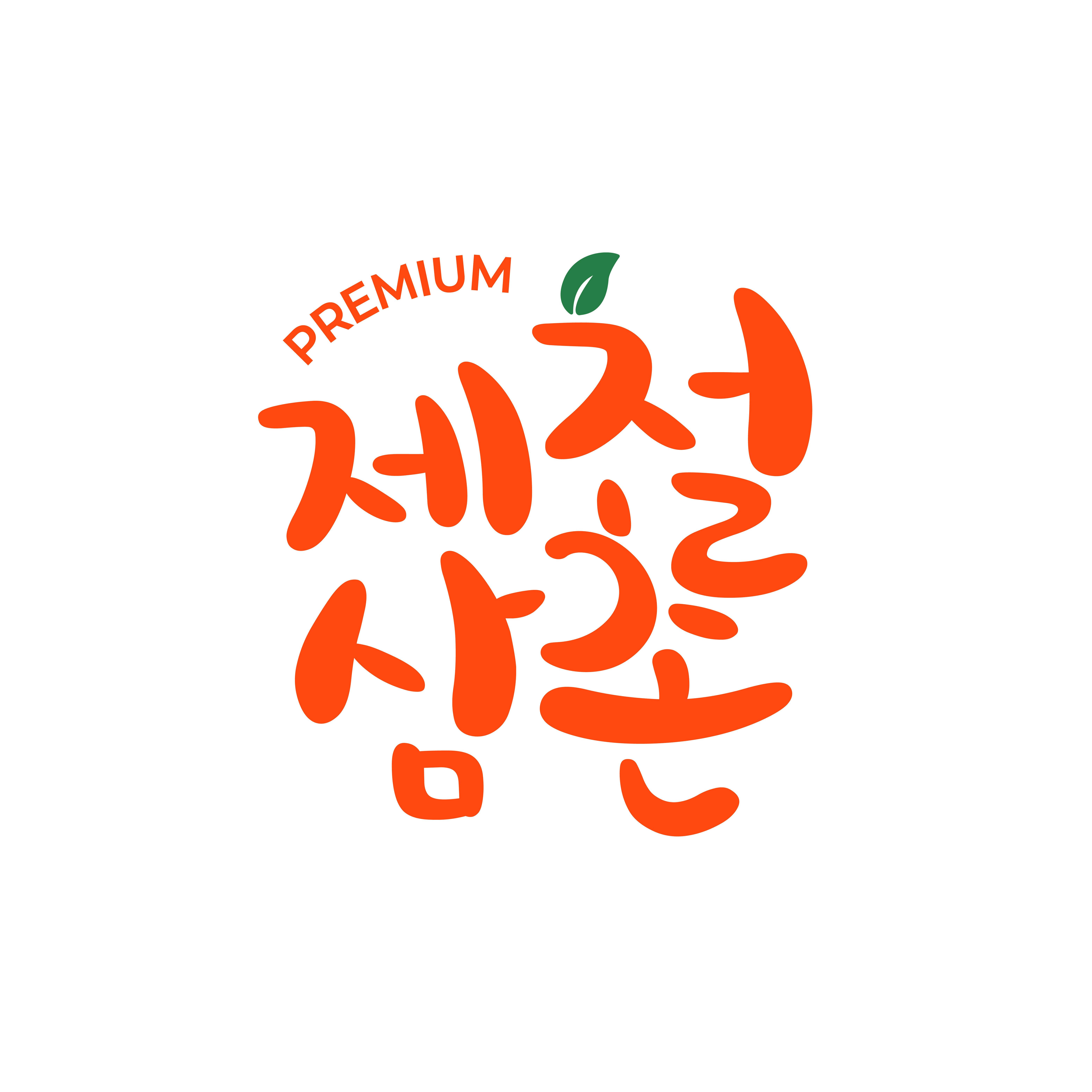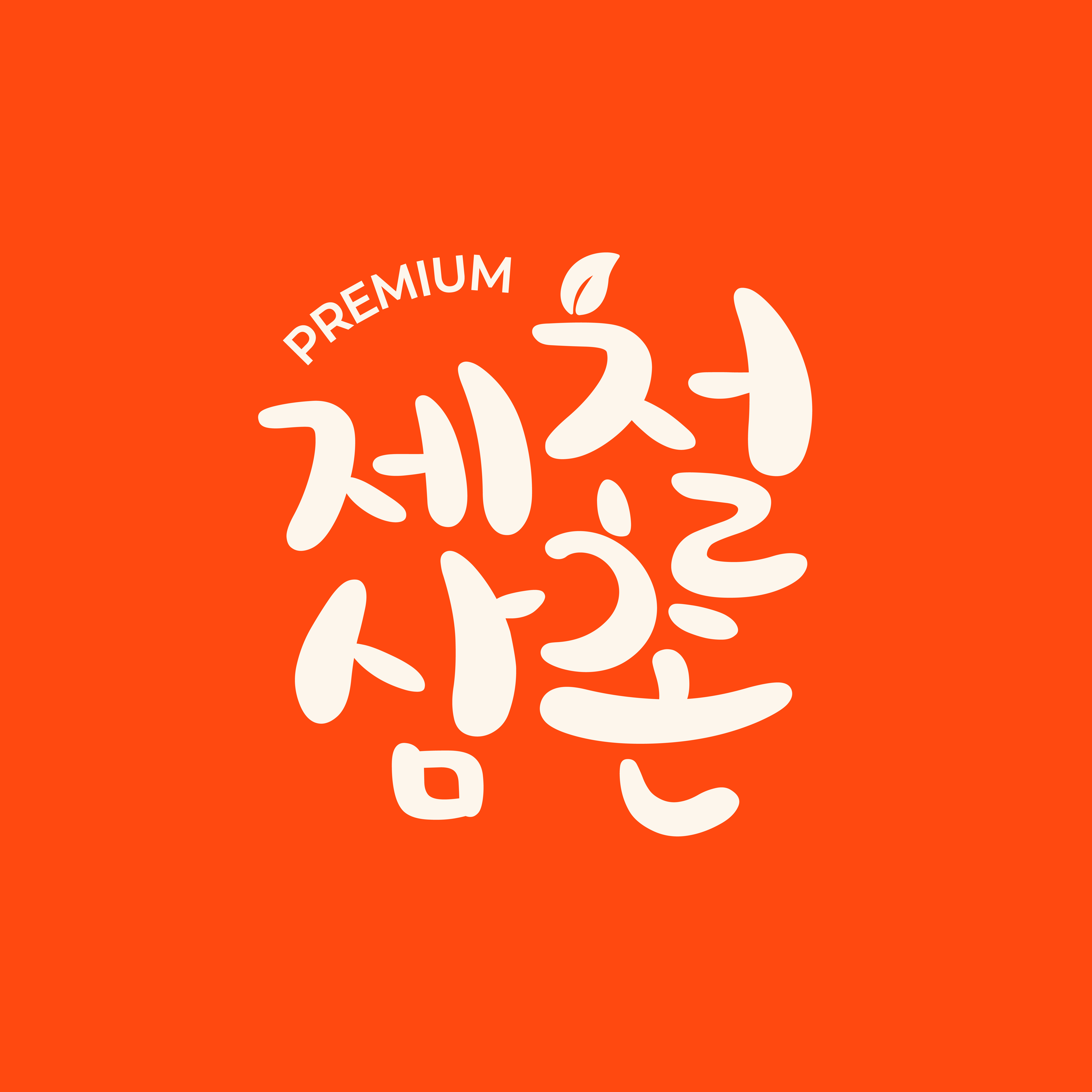 붓글씨 특유의 리듬감과 유연한 획으로 '삼촌'이 주는 친근하고 푸근한 이미지를 시각화했습니다. 나뭇잎 포인트와 따뜻한 오렌지 컬러로 신선한 프리미엄 과일의 정체성을 강조했습니다.