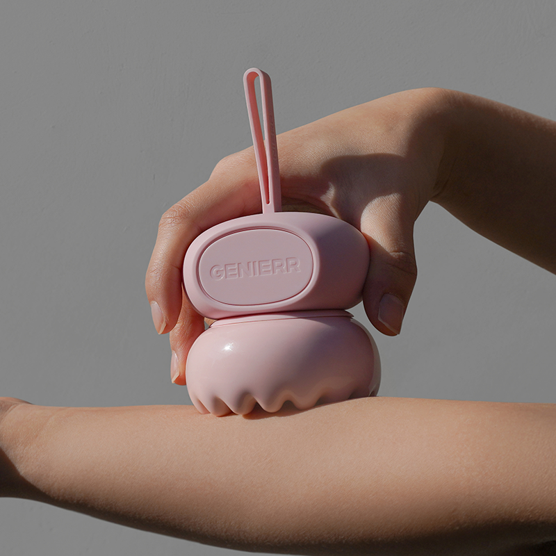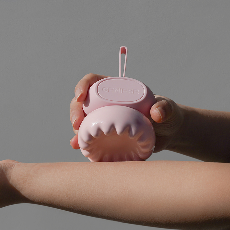 둥글고 부드러운 실루엣, 잘린 듯한 헤드 조형, 각인 디테일은 제니에의 모든 제품군에 공통으로 적용되는 조형 언어입니다. 듀얼 괄사라는 명확한 포지셔닝을 통해 차별화된 셀프케어 경험을 제공합니다.