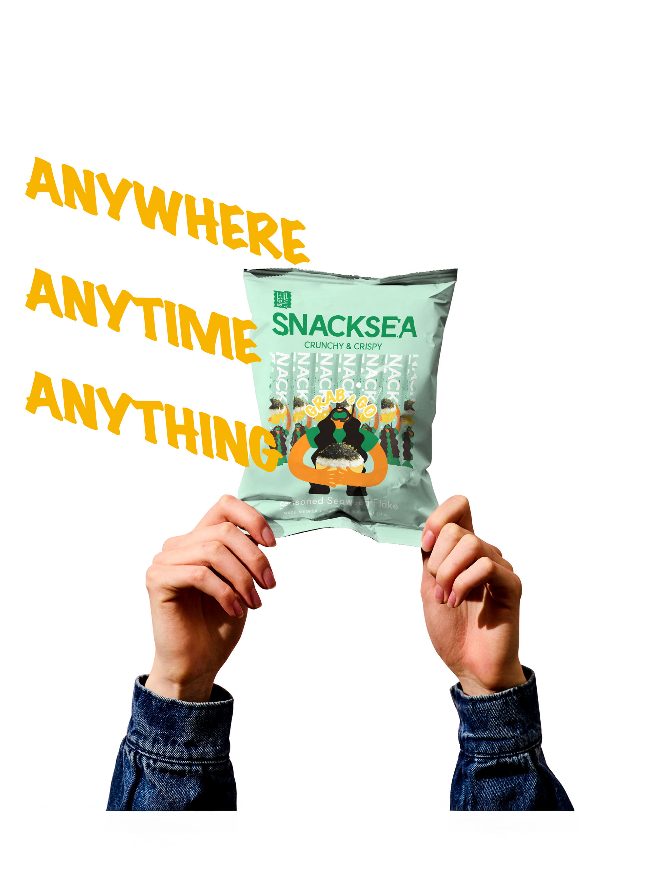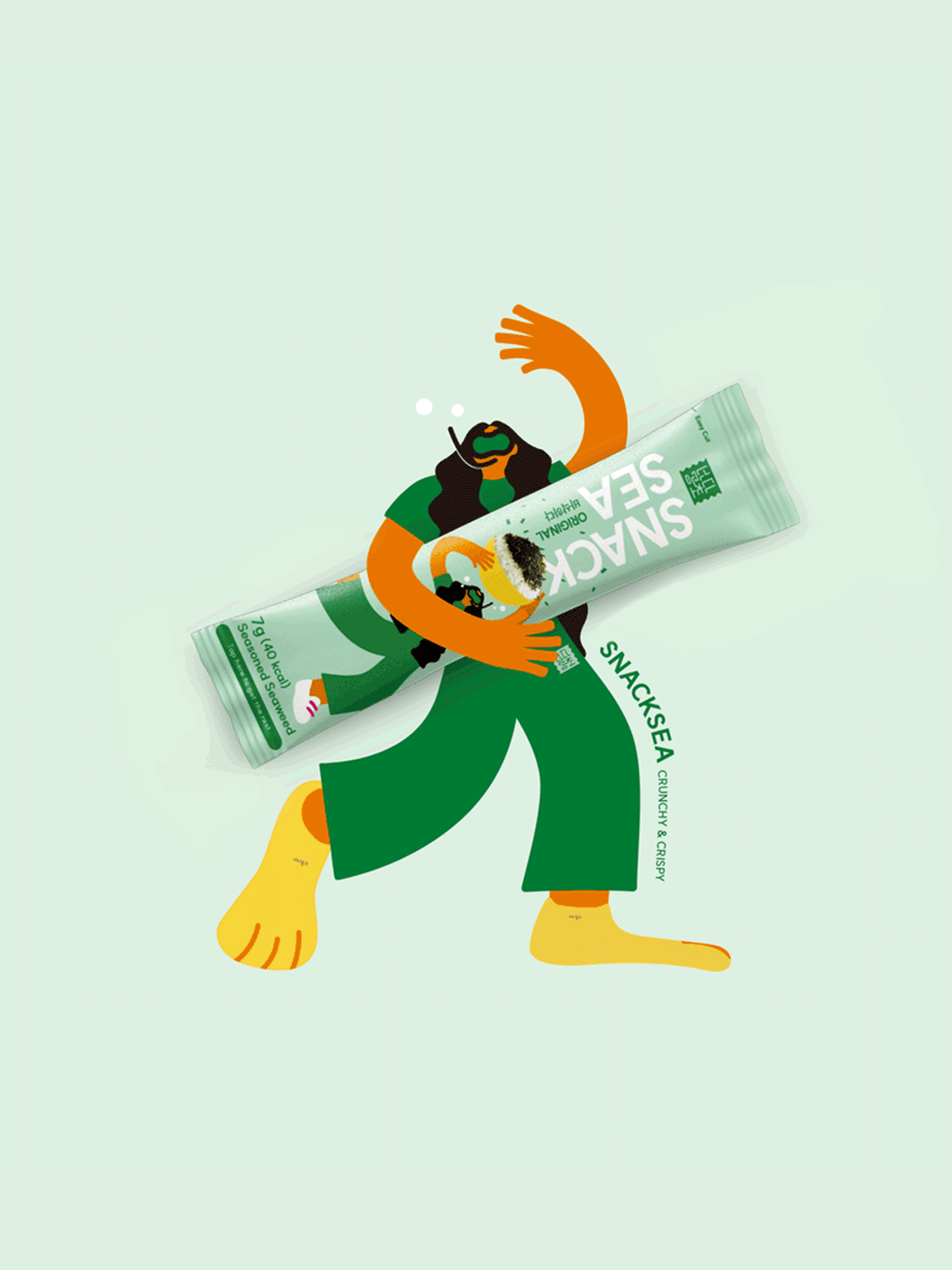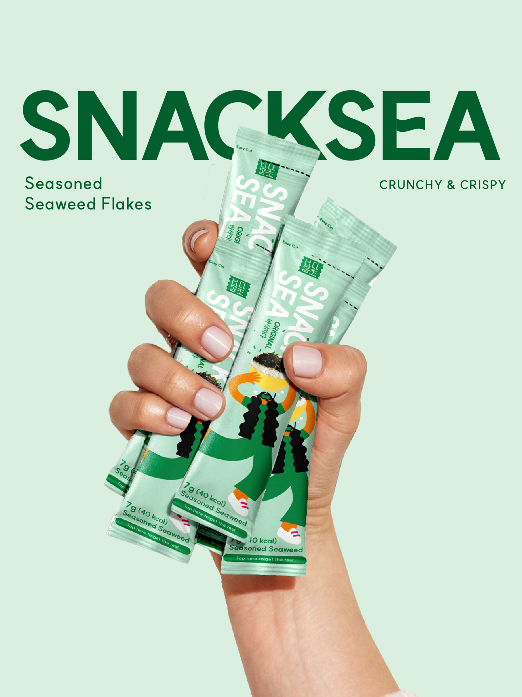 SNACKSEA Seasoned Seaweed Package Dev. Client : Haesong S&T Creative Direction : Recipe Design inc. Design : Recipe Design inc. Illustration : Recipe Design inc.