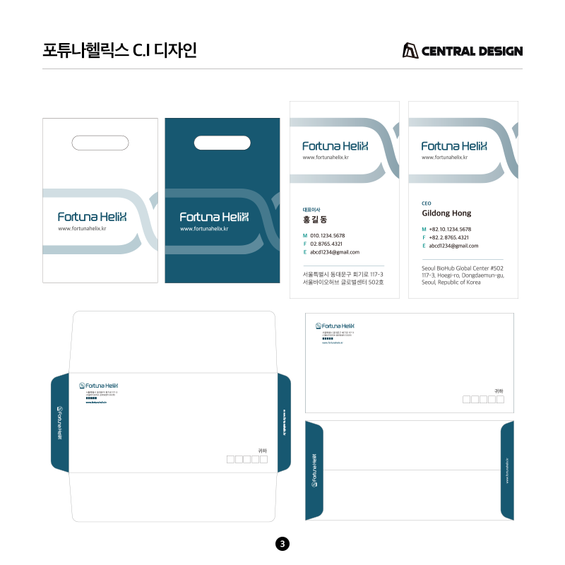 DNA 구조를 모티프로 생명과학 기업 이미지를 표현한 디자인입니다. 유전자 형태를 단순화해 전문성과 신뢰성을 상징하고, 블루 계열 컬러로 안정감 있는 브랜드 이미지를 전달하고자 하였습니다.