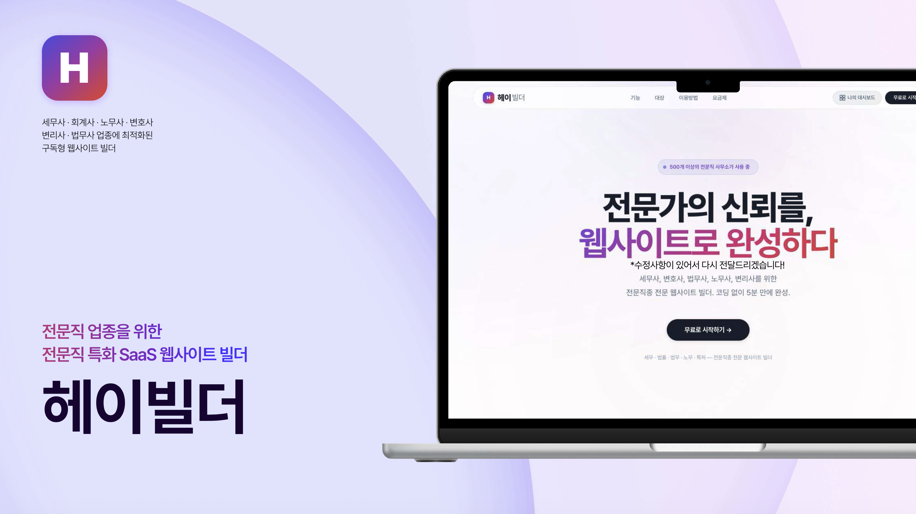 전문직 업종을 위한 전문직 특화 SaaS 웹사이트 빌더