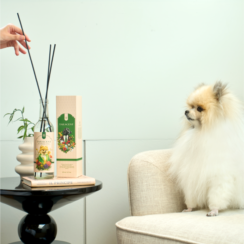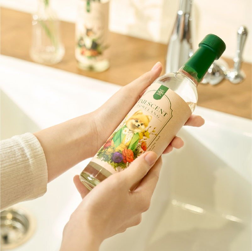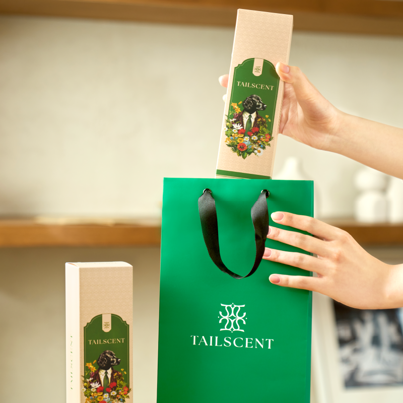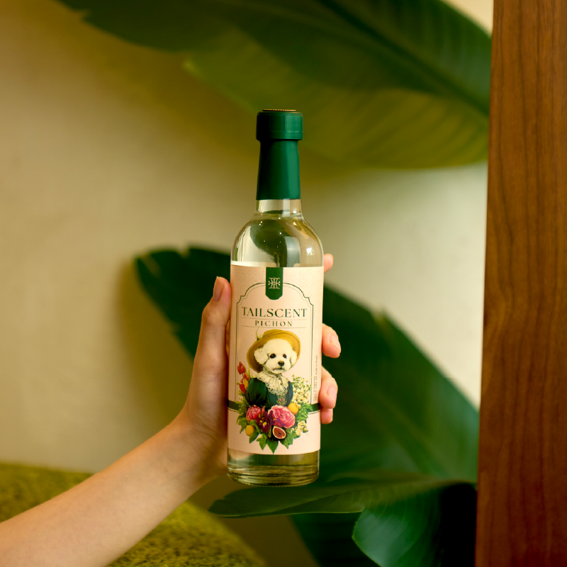 자연 유래 성분의 알러지 프리 콘셉트에 맞춰 그린톤과 고급 심볼을 적용했습니다. 향별로 강아지와 꽃 라벨을 더해 개성을 표현하고, 와인병 형태와 유러피언 레이아웃으로 고급감을 완성했습니다.